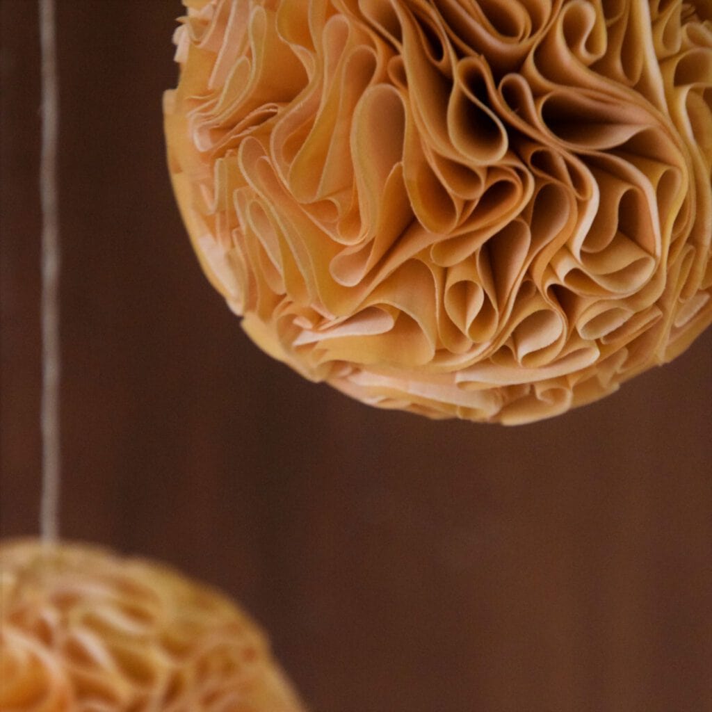 Diese wunderbaren Lindenholzkugeln*, die aus heimischer Herstellung sind.