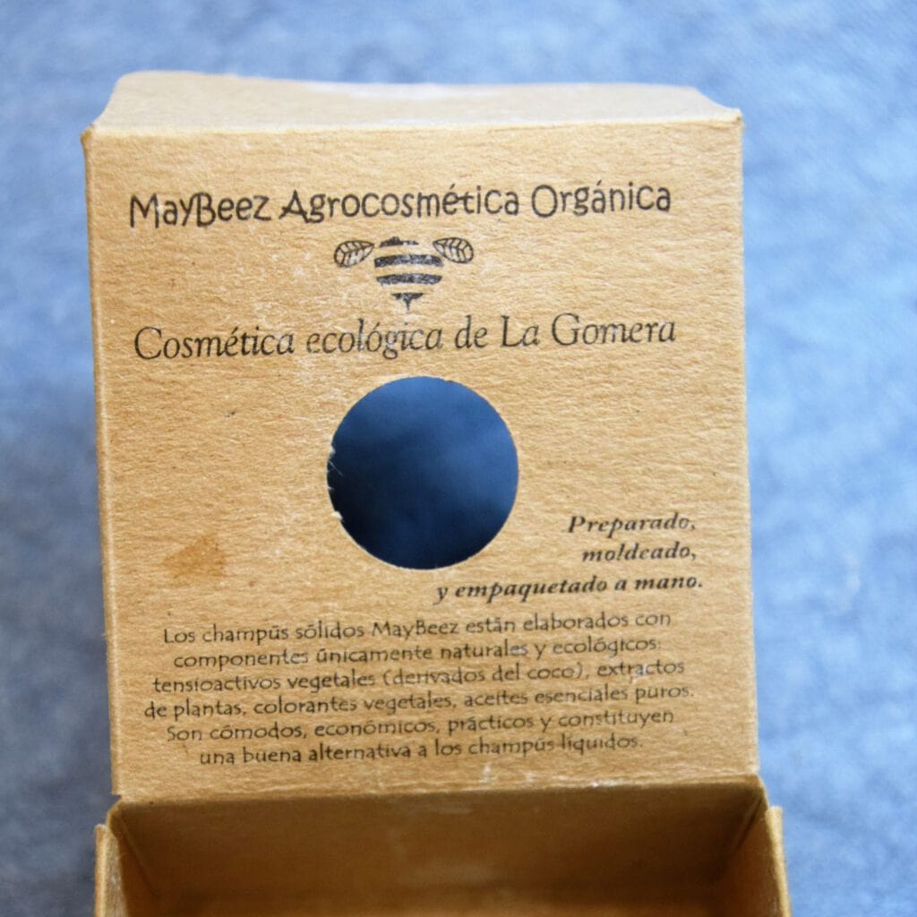 Es war Festes Shampoo „Cold Minded“. Hersteller ist Maybeez**. Ein Bio – zertifiziertes Produkt von der Insel La Gomera, Spanien. Die Übersetzung der spanischen Bio -Siegel habe ich unten angehängt.
